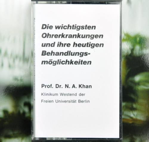 Audiokassette/digital stream: Prof. Dr. med. Khan, Die wichtigsten Ohrerkrankungen und ihre heutigen Behandlungsmöglichkeiten, 21:12 min, für Walkmann und Kassette oder als digital-stream im wav- oder ogg-Format. ( Hinweis: Die digitale Fassung kann leichte Rauschgeräusche aufweisen, da es sich um eine ältere Tonspur handelt.) Anfrage/ E-mail senden Anfrage digital-stream Anfrage Audiokasstette